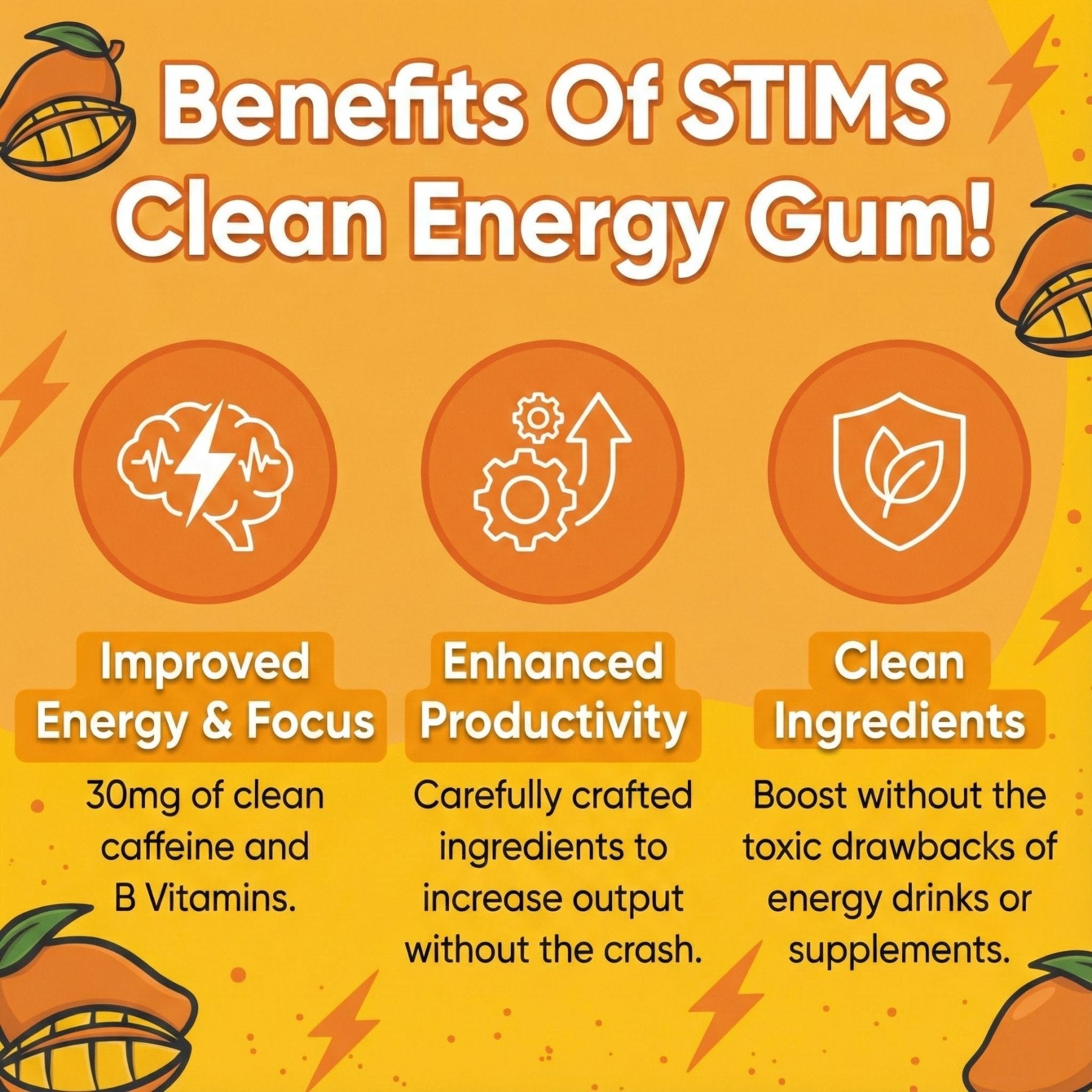 Much Different. STIMS focuses on clean ingredients, mouthwatering flavors, and an enjoyable chewing experience. You wonβt get the harsh taste or gritty texture thatβs typical with other caffeine gums and mints.