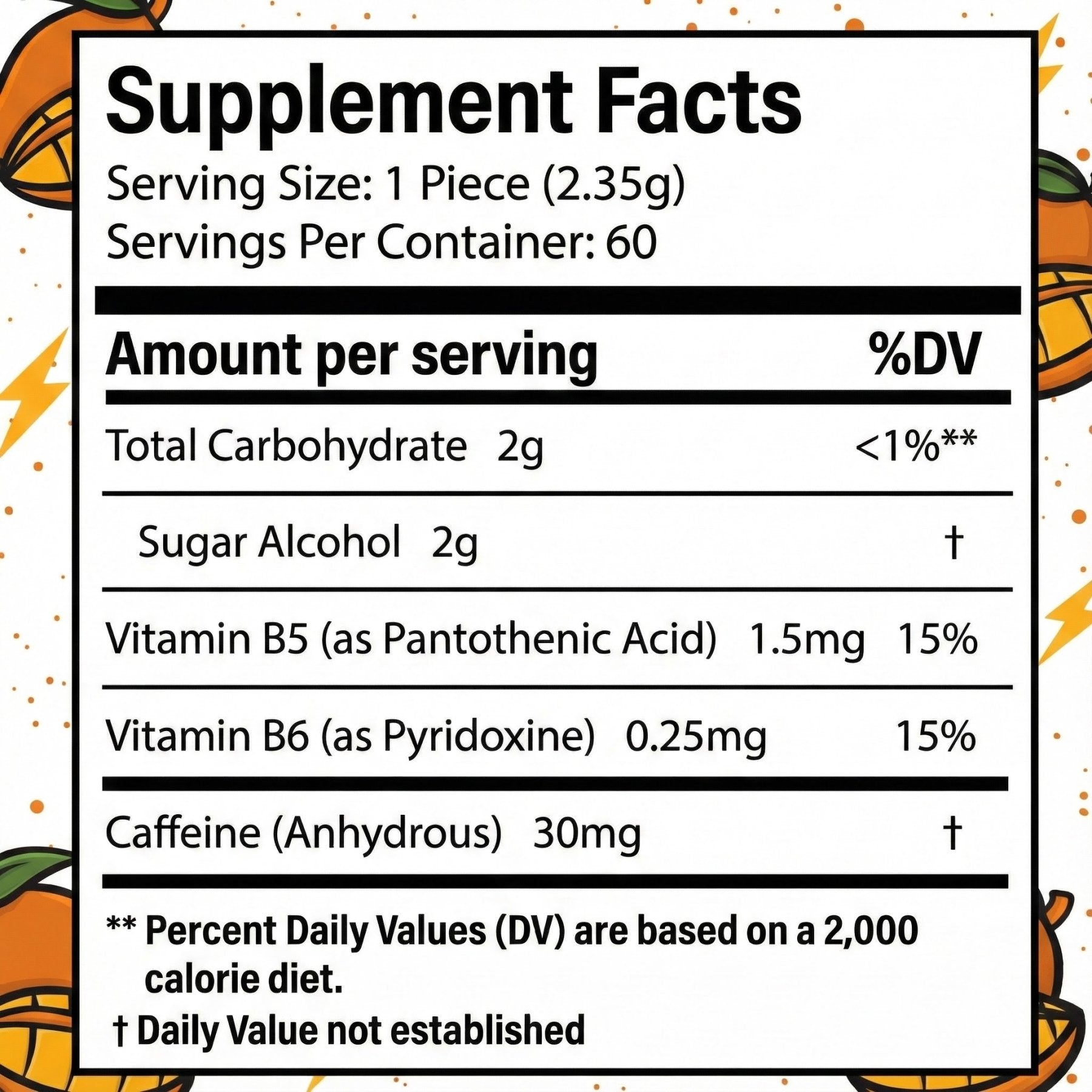 Chew 1 to 3 pieces when you need a boost in energy and focus.